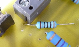 The terminal blocks should be fitted before the 300R or 560k resistors so that the resistors can be routed not to obstruct the blocks. As shown next there is minimal clearance, and if the resistors are added first the blocks may not be easy to fit. The 560k clearance has since been improved a little.