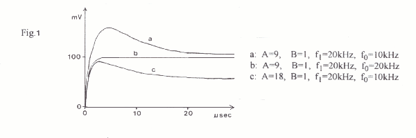 A worse error, however, is merely to compare the overshoot amplitude to the steady state amplitude to give a percentage overshoot, and then state that the requirement to keep this percentage low will then keep distortion low also. Compare the two curves b and c in Fig.1. showing the voltage at the input of an amplifier input stage with a step signal applied.