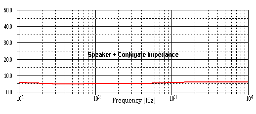 Next is the impedance plot with the conjugate network connected. The result is not perfect, but good enough for the present demonstration.
