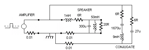 I previously wrote a piece about the Peak Current Requirement of Speakers. This was based on reports in recent audio design books, which refered to a paper, Peak Current Requirement of Commercial Loudspeaker Systems. which shows that certain rectangular pulses applied to speakers can require unexpected high current peaks. This applies to any rectangular pulse, simply because the reactive components of the speaker impedance cause a frequency dependent phase shift of the current, which changes its shape and increases its peak level. This can be prevented by adding a 'conjugate network' in parallel with the speaker so that some of that peak current is provided via the network, and less is required from the amplifier.
