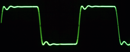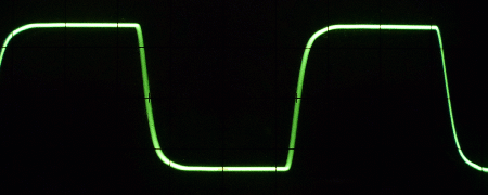 Next is an easy test, a square wave at 1kHz with a resistive load, most amplifiers can produce a good result here.
