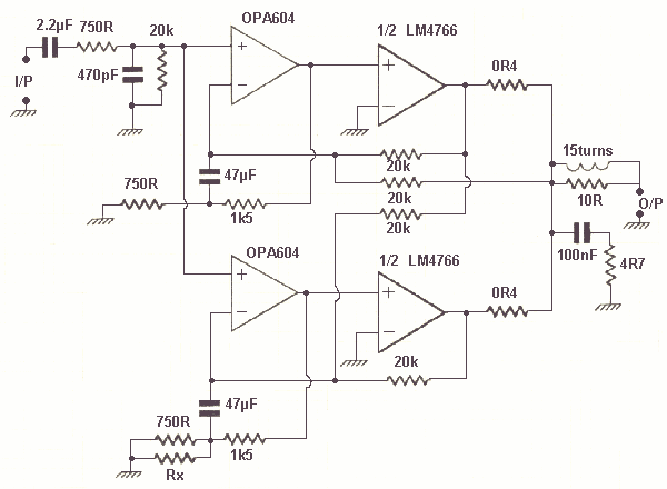 The next one is another that looked like a good idea at the time, but now I'm not even sure what was the point, maybe just a way to combine the two halves of a LM4766 to increase peak current. At low current output one half adds feedforward distortion cancellation for the other half.