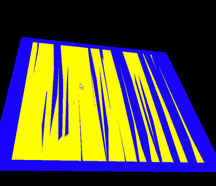 What you see above is a classic example of z-buffer fighting. This artifact occurs when two planes are aligned exactly into one surface. The z-buffer algorithm works by tagging each pixel as "infront" or "behind" certain objects in a it's view. When two planes are tagged as being equal to each other, this causes a serious flaw in the algorithm which is notable in the picture above.