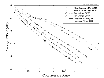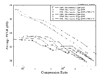 The graphs below show image quality versus bitrate and compression ratio, for both H.261 and H.263, using the same grey scale QCIF video sequences.