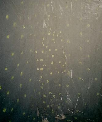 The Dot Room was one of my biggest hits in the house. Everyone liked it. If you look really close, you can tell where the actor is. The only hard part about this scene was that it was hard to hide the actor when I was using black lights. So I decided that for this year, I am going to change the affect to a splatter room. That way it will look better. Instead of using black plastic as walls, I am going to use Black plywood walls. This will help the scene look a little bit better.