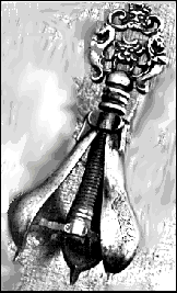The pear was "expanded by force of the screw to the maximum aperture of their segments. The inside of the cavity in question is irremediably mutilated, nearly always fatally so. The pointed prongs at the end of the seqments serve better to rip into the throat" or "the intestines."