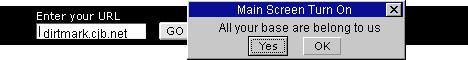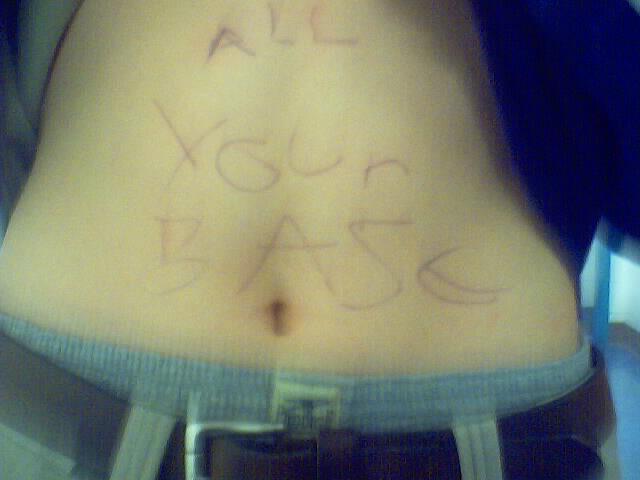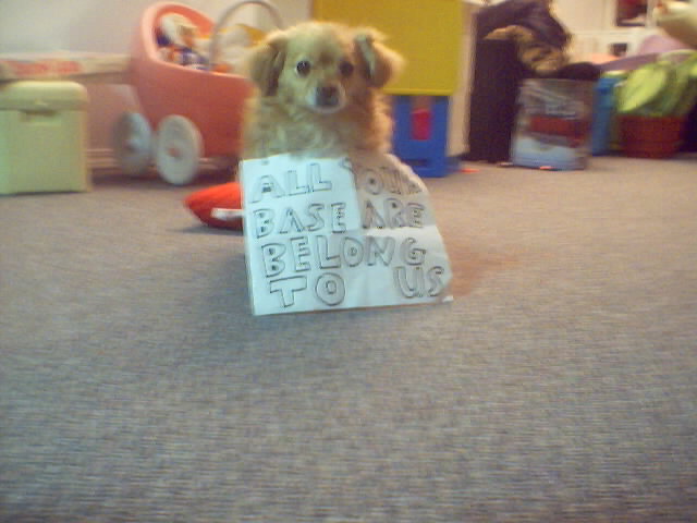 Hmmm, today we took some pictures of us (the dirtmark staff and viewers) we will hopefully post them soon (if curtis every get them uploaded). We took them @ SBS and 'someone' posted a sign up on the wall that said: "All your base are belong to us!!!" It was funny seeing reactions from people who didn't know what it was or meant. "What does it stand for" and "Grammer problems" were some funny quotes from confused people lol.