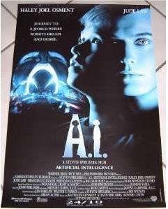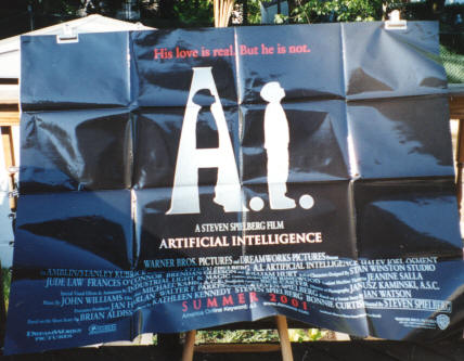 PSS003 18"x27 Single-sided Promotional Poster given out to attendees of the advanced screening of A.I. Looks like a cut-out of a larger poster, but the image of David is made up of thousands of words and phrases. This Poster is an ad for the (now cancelled) Microsoft A.I. game.