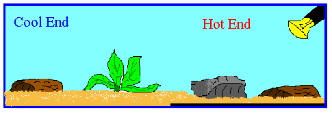 bark in the hot part of the cage and a piece in the cold part. Then put a