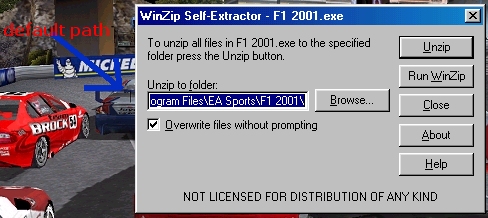 The file is set on the default path C:\program files\EA Sport\F1 2001.