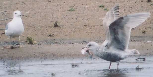 unidentified gull -- unusual first-year Herring Gull or Iowa's second Slaty-backed Gull?, Red Rock Dam, Marion County, Iowa, November 2000.