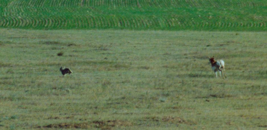 Pronghorn chasing a Coyote -- Phillips County, Montana, June 2001.