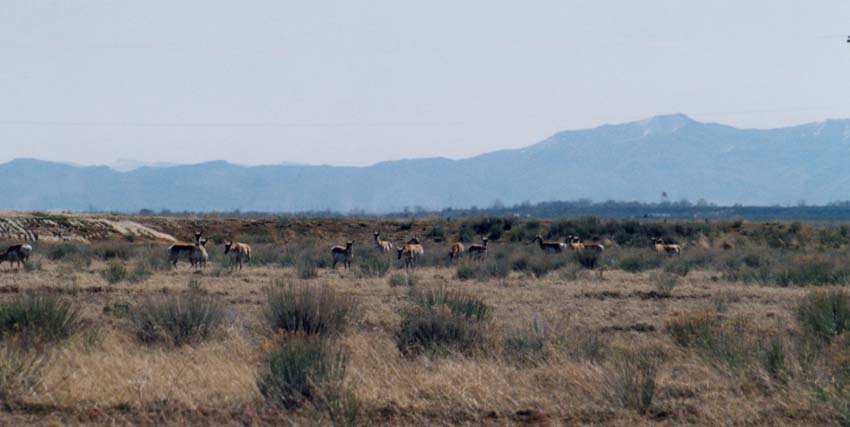Pronghorns -- herd, Honey Lake, California, July 1999.