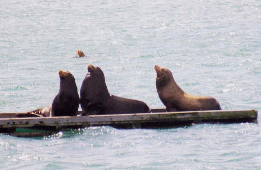 Steller's Sea Lions -- group of three, Crescent City, California, March 1999.