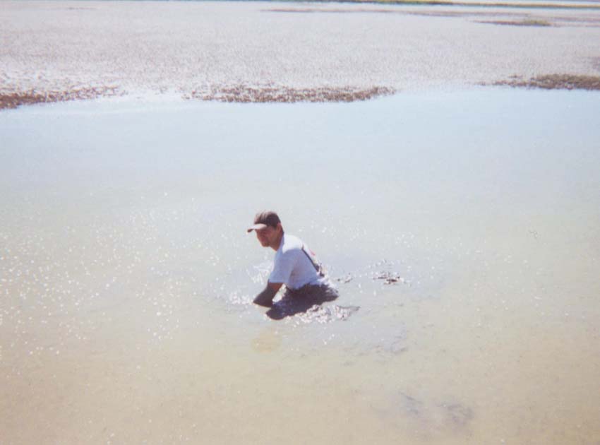 Carson Sink, Nevada -- An unsuccessful attempt to catch American Avocet chicks. Mudflats are not always as solid as they look.