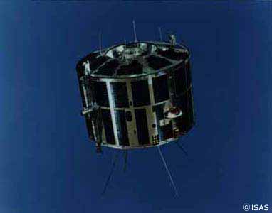 | The spacecraft (175K GIF) weighed 3400 lbs at launch including the solid rocket moter used for injection towards the Moon. |