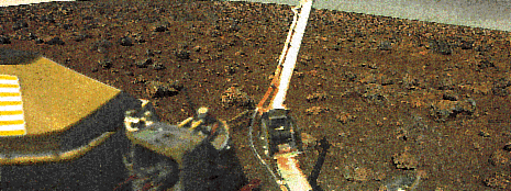 VIKING 2 LANDER scooped up bits of Martian soil and tested them for the presence of life and organic molecules. Despite tantalizing initial results, the Viking experiments suggest that Mars is, at present, a dead world. Future missions may search for fossils of organisms that might have lived billions of years ago, when Mars was warmer and wetter.