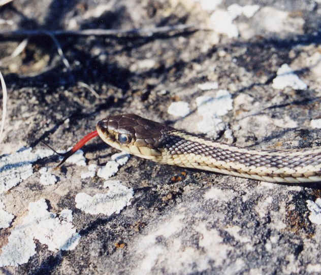 Remarks: These are probably the most commonly seen snake in the La Crosse area (and the entire state of Wisconsin). The Myrick Park marsh has a large population and many times during the summer of 2000, as I strolled along the paths there, it seemed I could not walk for more than 50 yards without seeing a Garter Snake shoot through the grass at my feet. However, the flooding that occurred there during the spring of 2001 seemed to push them out of the area surrounding the major marsh trails and I did not see a single one until late August (this was a single individual some distance from where I had found them the previous year).