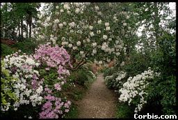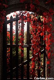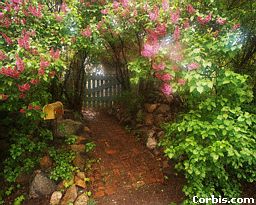 The sun shines through the garden with a heavenly appeal. When the sun hits the garden just right everything just seems to sing out with beauty. The creek glitters as it flows, The flowers sing happily with a vibrant color, and the trees send beams of sunlight through the garden. Then you can go through anther gate to get out.