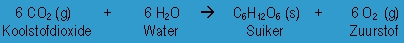 Bij het veranderen van water en koolstofdioxide in suiker blijft er nog een hoeveelheid zuurstof over.