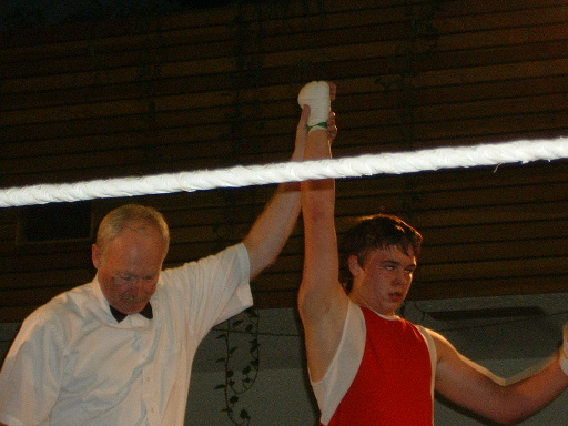 Tyler Dillman was definitely the Cinderella man of this tournament for the Manning Boxing Club. Tyler had his third fight and his first win! Every time Tyler gets in the ring he improves. He fought a young man from Red Deer who gave Tyler a run for his money. He won his match by Split Decision, which means it was very close, but a great fight! Congratulations Tyler on your win.