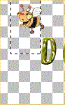 23)Close bee 21 layer....open bee 22 layer... with your selection tool set at rectangal..draw a box around the bee that is over the first letter..