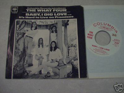scarce 45 by this all-girl 60s rock band, we have 1 or 2 songs reviewed on page 13 by a band by this name but they spell it THE WHATT FOUR, and they were probably all guys, wonder if either will decide to reform and attempt to take over the world ?