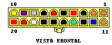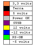 | PRETO : terra VERMELHO : +5V BRANCO : -5V AMARELO : +12V AZUL : -12V LARANJA : power good |