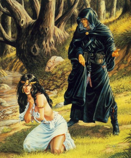 "Darkness falls, my brethren," said the man dressed in normal peasant garb which was mostly brown with a dark hood; I never thought about meeting one such as this person in the forests of Cormyr, a dark brethren of Xvim. He must of thought that I, wearing the garbs of most Zhentish citizens, was a dark agent of the Zhentil Keep. But he was wrong. As you know I am indeed a rouge and a rebel bard born from the Zhentil Keep, but I am not an agent of evil. This dark-robed spy would regret showing his true colours to me--for I pulled out my long sword and promptly slashed his throat, cutting away only the first layer of flesh with my first attack. Stunned, the black-robed spy staggered and rushed at me with his mace raised high in the air, swinging it and smashing it down to my face with all his might. I was barely able to dodge the attack. Seeing his moment of disbelief, I plunged my long sword into the spy's belly, and he stumbled back from me, swaying precariously on his feet. Believing that he was all but dead, I watched as the spy took out a symbol, (I now know of the symbol which the spy carried, it was the holy symbol of Xvim) and as he held the emblem up, it began to gleam a greenish hue. The spy's wounds healed in front of my incredulous eyes. I had just finished teaching myself some new magic, that I was able to find during my journey to Cormyr, I brought a spell to mind: magic missile. As I cast the spell two arrows appeared from my hand, finding their mark in the spy's chest, and upon impact making a loud, muffled thumping sound. The Black Robed spy rocked back from the force of the missiles hitting him.