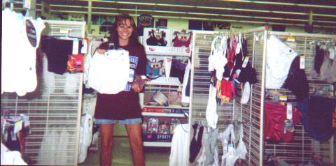 Tammy in the undie section at K-mart, holding up a pair of granny panties!!