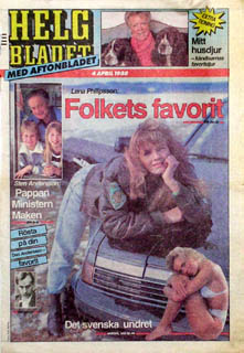 OKEJ nr 8 1990 Okej nr:14 1990 Okej nr 17 1990 Starlet nr 11 1990 (Samlarbild på baksidan) Frida nr 18 1990 HÄNT EXTRA NR.13 1990 Vecko revyn nr 25, 21 Juni 1990 Året Runt nr 2 1990 (Torgny är min extrapappa) Veckorevyn nr 9, 1991 Hänt Extra Nr.50 1991 (Romans med Herngren) HÄNT NR 11 1991 HÄNT NR.21 1991 (Jag är inte som folk tror) Frida nr 17 1991 (Därför lever hon ensam) 1993-1997