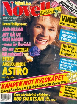 OKEJ nr 24 1989 (Lena P. Läcker vågad) Starlet nr 3 1989 (Lenas horoskop) Romantikk nr 33 1989 (Norge) 1990-1991