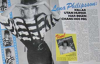 ![]() Året Runt nr 51 52 1984 (Håll ett öra på "Lea") Saxons juli 1986 På scen nr 6 1986 Mitt livs novell nr 29 1986 Hemmets Journal Nr 13 1986 Hemmets Journal Nr 45 1986 OKEJ nr24 1986 Veckorevyn nr 19 1986 Okej nr 17 1986 (Jag sexig? Det hade jag ingen aning om) Veckorevyn nr 29 1986 1987