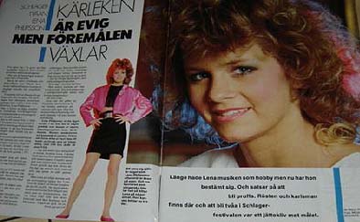 Linda nr 8 Augusti 1987 FIB aktuellt nr 51 1987 Husmodern April 1987 Mitt livs Novell juni 1987 Mitt Livs Novell Nr.27 1987 Okej nr 9 1987 Okej Nr 21 1987 Okej nr 22 1987 (Poster där Lena sitter på en stol) Tracks Nr 1 1987 Röster I Radio TV Nr.8 1987 Hemmets Journal Nr.20 1987 (Artikel om Lena & en papegoja) 1988