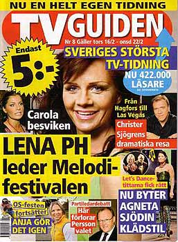 Schlager nr 1 2006 (På omslaget) Expressens TV-bilaga 16-22 feb 2006 (På omslaget) Lista med tidningar som innehåller artiklar eller bilder O.B.S - ofullständig! 1995-1997 Vår bostad nr 11 November 1995 Aftonbladet söndag 23 november 1997 nr 47 Café februari 2002 2004 Hänt Extra -nr35 Se & Hör - nr36 Elle - nr8 September Aftonbladet tv 12 Maj Nr 20 2004 Kändiskryss nr 4 2004 Veckans nu nr 8 2004 GRIP - Magazine 5/2004 |