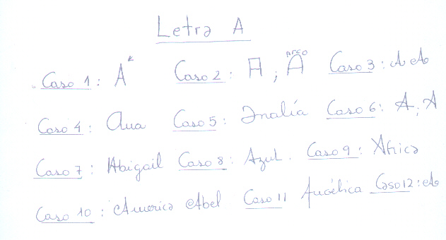 Caso 3) La "A" en forma caligráfica mas o menos complicada. es una forma que hacen las personas tradicionalistas, apegadas al pasado, a las costumbres del medio en que viven. Propia de personas amoldables, amables, buenas ejecutantes de tareas y labores, temerosas de infringir las leyes