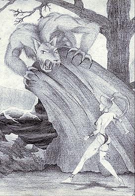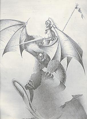 Detail from "Hawklizard and Rider" (Graphite, 1994)