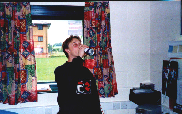 New photos awaiting - Uni friends and Wedding photos - from when l was best man at a friends wedding March 99 The 1st pic is a pic of me! The 2nd pic is a photo of one of my Uni friends Nisha and myself - taken the nite before Nisha left Uni for Summer hols The 3rd pic is a photo of Nisha, Al and myself The 4th pic is a photo of all of us again - Al changed her mind during the photo and decided to leave the pic - didn't work did it Al :0) The 5th pic is a photo of us all again - with Nisha's soft toys this time - Don't Ask! The 6th pic is a photo of Nisha and Al together - if anyone ever wants to find Al - check Reynolds one of the local nightclubs - Al practically lives there! The 7th and 8th pictures are photos of one of my Uni friends and flatmates, Ian - aka Cornholio. Ian l have one thing to say - TUNA! The 9th pic is a photo of Ian's sister - Lindsey The 10th pic is a photo of one of my friends at Uni, Raf - aka Yahoo King/VCD King - so called because he spends all his time on Yahoo Chat and has a large collection of new movies on VCD. The 11th and 12th pics are photos of one of my Uni friends, Dave - Dave is an Essex bloke and shares one key thing with me - that is DRINKING!!. Dave is off to a new Uni in September - Good Luck Dave!! The 13th pic is a photo of Dave's Mrs! - otherwise known as Lisa - Dave and Lisa are engaged - Anyways goodluck to both of you for the future and what it may bring! The 14th pic is a photo of one of my friends at Uni, Louise - Louise is one of RAF's flatmates, check out Lou's website in my links section. The 15th pic is a photo of one of my Uni friends, Martin - aka Ford Lover. So called because of his love for his Ford Fiesta The 16th pic is a photo of Tom - now and again Tom and l go on 30 mile runs together - no-one else is as insane to run with me lol! The 17th pic is a photo of one of my friends and flatmates at Uni, Mark - Mark is a good cook and has tried to teach me somethings - in exchange l have helped him with his computer. The 18th pic is a photos of one of my Uni friends, Mark. Yeah l know another Mark! The 19th pic is a photo of Simon - I have known Simon for 6 yrs now - we went to school together and then onto Newark College then onto Uni The 20th pic is a photo of one of my friends at Uni, Matt - obviously relaxing with everyone's favourite pass-time - drinking. The 21st pic is a photo of one of my Uni friends and raf's flatmates, Sarah, this pic was taken rather strangely by the RAF man The 22nd pic is a photo of Shel - A Uni Friend - check out Shel's website in my links section The 23rd pic is a photo of ESH - Another Uni Friend - Esh told me he wasn't drunk when this was taken - l don't believe him lol The 24th pic is a photo of where everyone who comes to Stafford Uni lives - The halls of residence - we were flooded that day The 25th pic is a photo of my room - bit messy but still - l have my Laptop set-up, next to my 2 pint beer glass - nicknamed the vase! The 26th pic is a photo of my kitchen - this is scary because it's so clean - normally the government ban anyone from entering it because of the fatalities it causes - one of my flatmates Dan took this photo - to prove that it can be clean for one day!