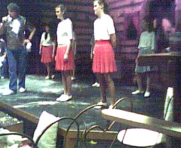 Waiting for the music to start and Dave(teacher) to stop talking.There is 6 of us on stage but u can not see us all. Their is 3 in the back and 4 of us in the front. :)