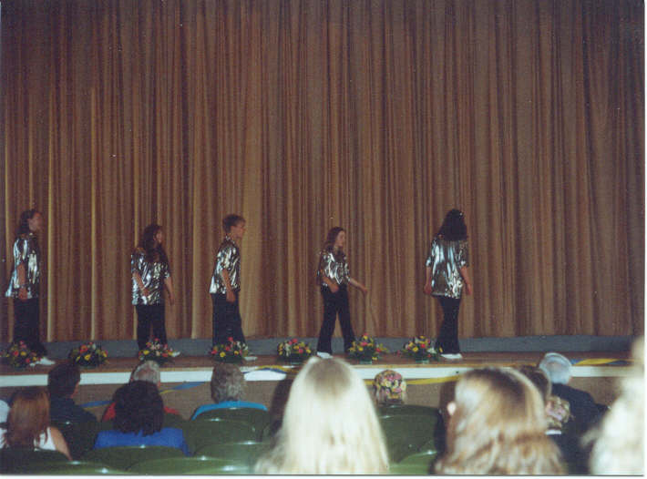 This is what Clogging looks like!! I was not able to get good pictures!! (my mom took them) the lighting was bad also... Enjoy what ya can see though lol. p.s. I am in the front row Far Left. I am saying that cause this is my page :) We danced in front of about 130 or more people this day. Feb-11-01