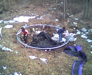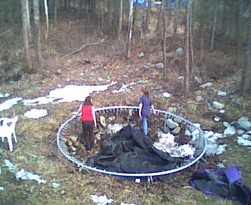 This is Debbie and Amanda setting up the trampolien the first time without my help and orders on how to do it :) *They did a good job* Oh and we have a hole dug for our trampolien, mom was to scard when it was above ground now it is ground leavel.