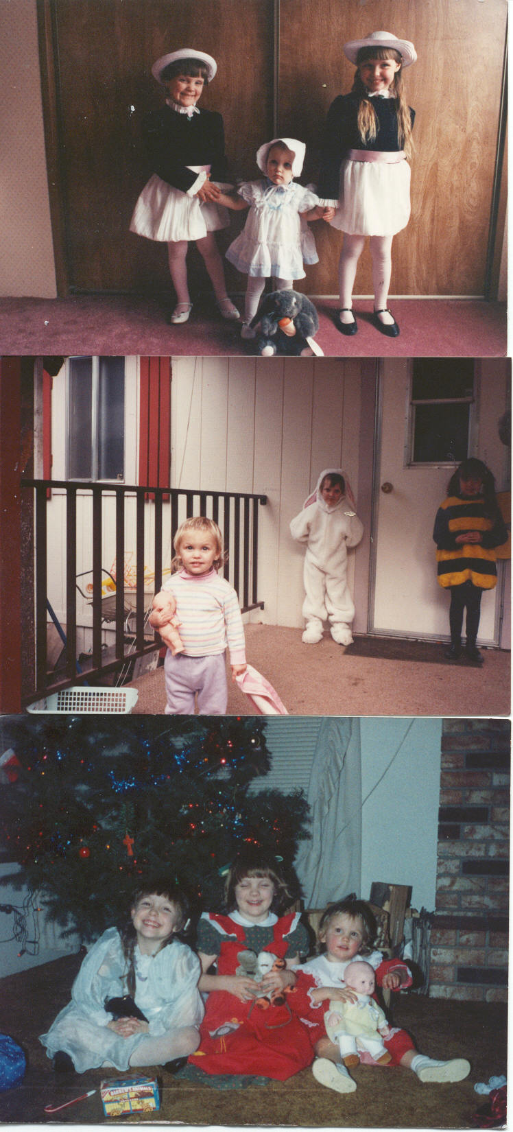 These are pictures of Ann, Kristy and Debbie. Picture's 1st Easter- 2nd Fall harvest -3rd Last christimas in OR.