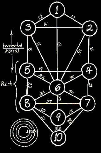 The lines in between the sephirot (numbered 11-32,) are paths between the worlds. The base of the Tree is physical. As you ascend, it becomes more etherial. The idea is to journey up the Tree, but there are lessons to be learned moving in either direction.