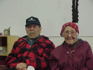 Lott Egoak was born in Akiak in 1910. Liz came here to live in 1932 and they got married. During the month of April, they would go to spring camp near the mountains; they would come home in June. At spring camp they would hunt for birds and other kinds of animals. To trap they would use the number two traps. They trapped mostly for muskrats. One time they caught fifteen muskrats in one night. They called forty-two muskrats or fifty-two mountain squirrels a coat. Sometimes they would sell the muskrats and the mountain squirrels to the stores for money. Other times they traded for supplies. Lott Egoak had the first motor in Akiak, he thinks he was a teenager. It was a two horse motor. They used wooden boats, but they didn't use plywood like today. They had a sawmill , but they couldn't saw planks longer than twenty-five feet. They stored their fish and meat in a fish cache after they dried it. It took a lot of work and a long time to dry the fish. Some people would dig a hole in the ground to store the meat or fish. Lott and his family hunted everywhere. They would go hunting by dogsled because there were no snowmachines or boats. They only hunted caribou, beaver, otter, porcupine, and mink. Lott and his dad would go the whole way to Tigchick Lake to hunt, but everybody else only went as far as the Kilbuck Mountains. Lott was taught to look at the sky to tell the weather. He would look at the sun, and if the sun had a ring around it and sundogs, it meant that bad weather is coming. Lott's father told him that the sun had put on its parka hood and mittens. The people in Akiak stopped dancing in 1932, because the preacher thought that the people would get too crazy. Lott said that he always did what his father said, even when he was a man. He told us that we will have good lives if we listen to the elders, our parents, and our teachers. |