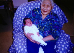 The next is a picture of John's mother, Nannie Hess, and Rachel as a newborn. She, John's mom, is a full-blooded Inupiat Eskimo. She is the girl's Ana, or grandmother in the Inupiat language.