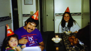 This is John's 35th Birthday Party. The little one is Rachel, the guy is John (duh) and the older girl, is Dani our other daughter !