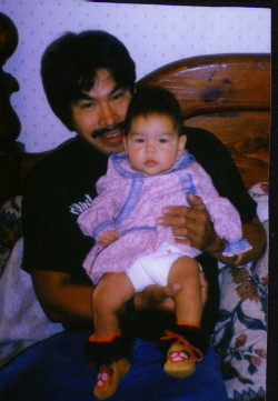 This is John and me when I was at about 165-170 or so, I guess. Please note my "Big Hair" look. LOL, I love big hair ! The next one is an older one with John and Rachel. It's one of my favorites. Rachel is wearing a traditional Eskimo Summer outfit.