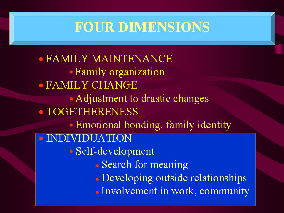 dimensions, satisfaction of all family members with their family, positive environmental feedback about family
