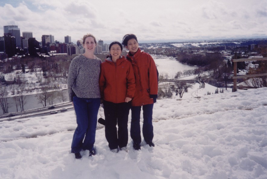 Laura, Mini & I huge snow in end of April!!! overlooking Calgary downtown