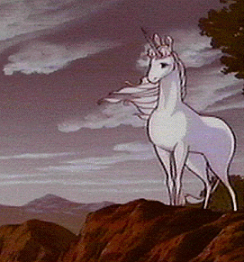 Have you ever seen the movie The Last Unicorn? That is my absolute favorite movie in the world! I watched it all the time when I was little, and I still watch it a lot now! I really recommend renting the video as soon as possible. (The book, by Peter S. Beagle, is also absolutely fabulous!)